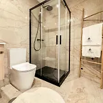 Dit appartement is uitgerust met airconditioning en beschikt over een balkon en een zitruimte met een bank. Deze accommodatie beschikt over over een TV en een flatscreen TV met satellietzenders, en essentiële veiligheidsvoorzieningen zoals rookmelders. Elke unit heeft bedden met hypoallergene donzen kussens, hypoallergische kussens en niet-allergene kussens. Een badkamer beschikt over een badkuip en een douche samen met kamerjassen en handdoeken.